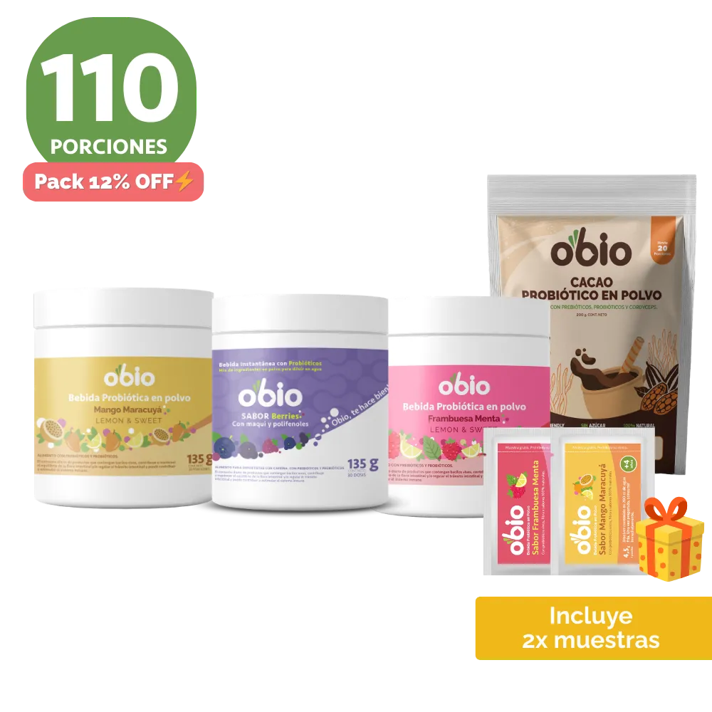 Todas nuestras líneas mantienen la esencia de Obio, ser una bebida instantánea en polvo que puedes disolver fácilmente en un vaso de agua para favorecer tu tránsito intestinal y fortalecer tu microbiota.