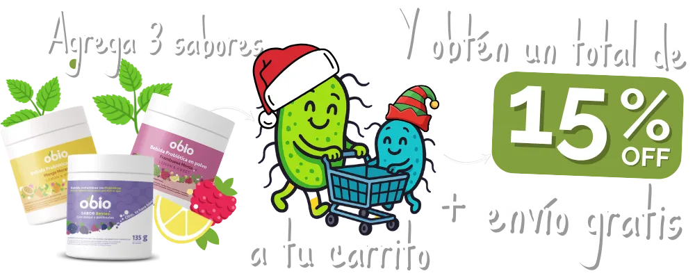 Obio es perfecto para equilibrar tu flora intestinal y lograr un bienestar integral. Esto se traduce en fortalecer tu digestión, reduce hinchazón, mejora el tránsito intestinal y sistema inmune (defensas).